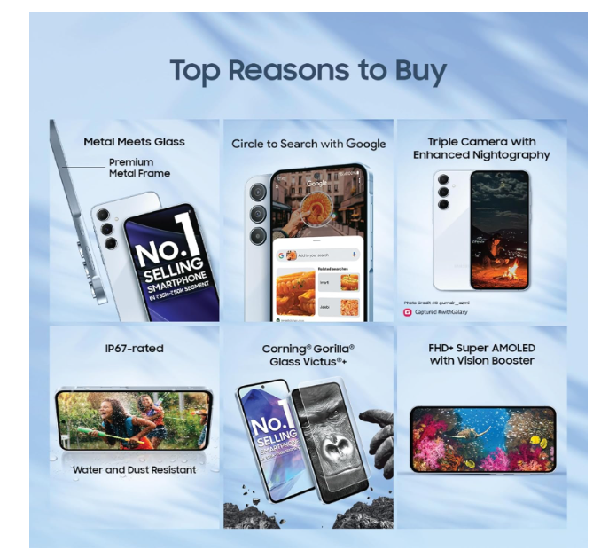 - Built to last – Corning Gorilla Glass Victus+ on both front and back. IP67 rated water and dust resistance. Powerful Exynos 1480 processor for fast, flawless mobile experiences. Larger Vapor Chamber for heat control.