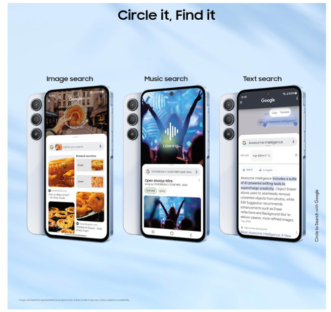 - AI Enhancements – Circle to search – Music, Image or text. Enhance your photos with Camera enhanced by AI and Intelligent visual editing – Object eraser. Image remaster. AI edit suggestions.
